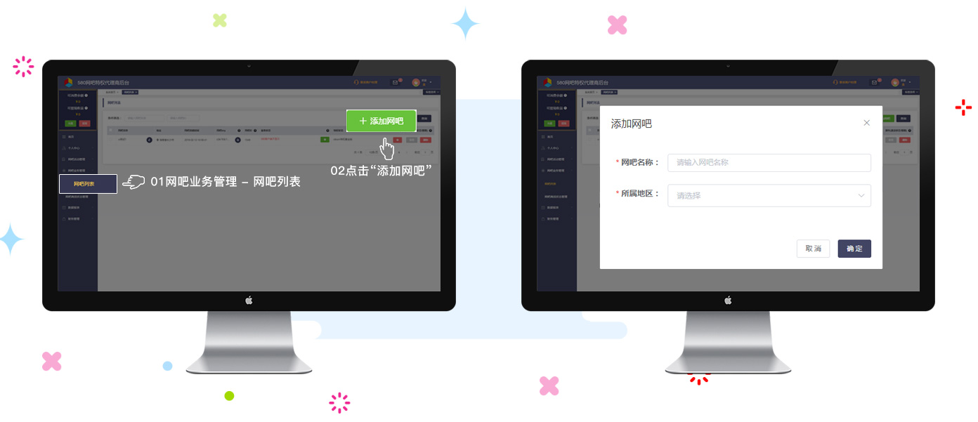 登錄后臺,點(diǎn)擊【網(wǎng)吧業(yè)務(wù)管理——網(wǎng)吧列表——添加網(wǎng)吧】